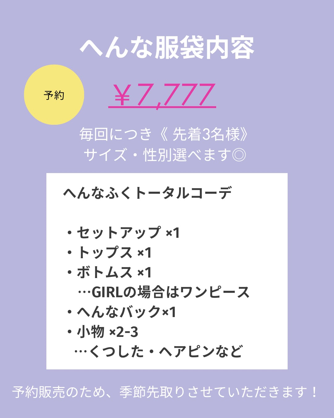 ※備考欄に必ず 【 サイズ / 性別 】 お願いいたします! 予約商品となっております。 ご購入後にセレクトさせていただきます♡ 約2-3週間程度での発送となります。 季節は次シーズン(現在は春夏)を先取りさせていただきます!